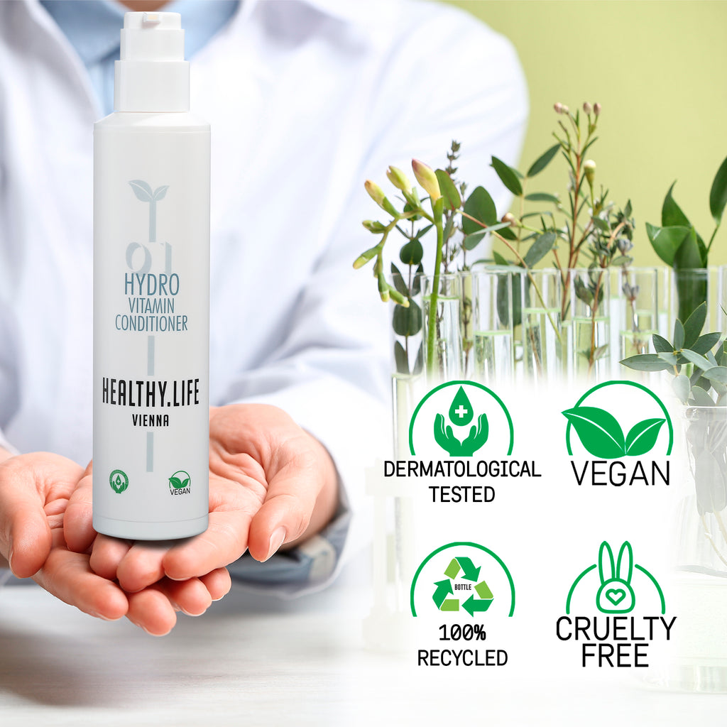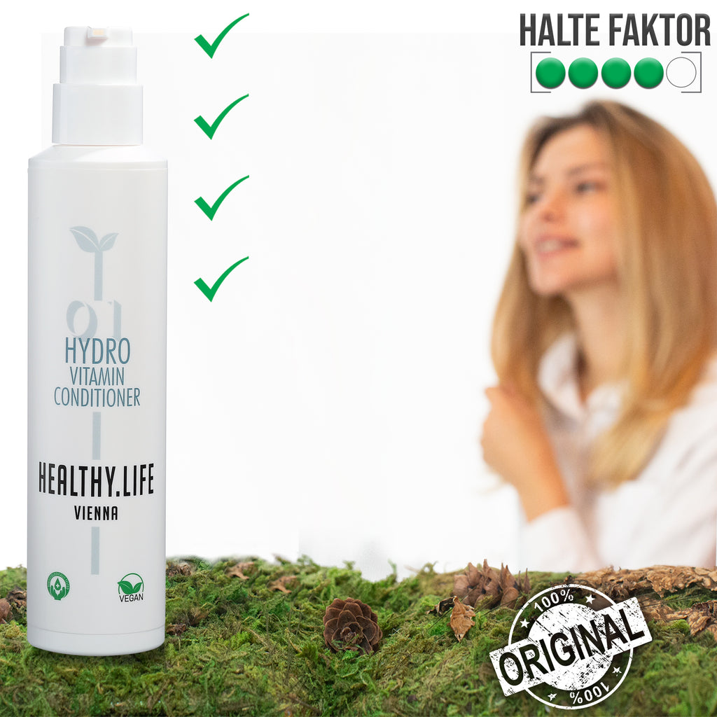 Hydro Vitamin Conditioner ist der nächste Schritt für die Feuchtigkeitsversorgung des Haares. Die sanft pflegende Emulsion wird nach dem Waschen ins Haar gegeben und nach kurzer Einwirkzeit wieder ausgespült. Sie wirkt vitalisierend und kräftigend, das Haar wird geschmeidiger und seidiger. Dafür sorgt nicht zuletzt das an Proteinen und Mineralstoffen reiche Seegras. Einwirkzeit: 2-5 Minuten.