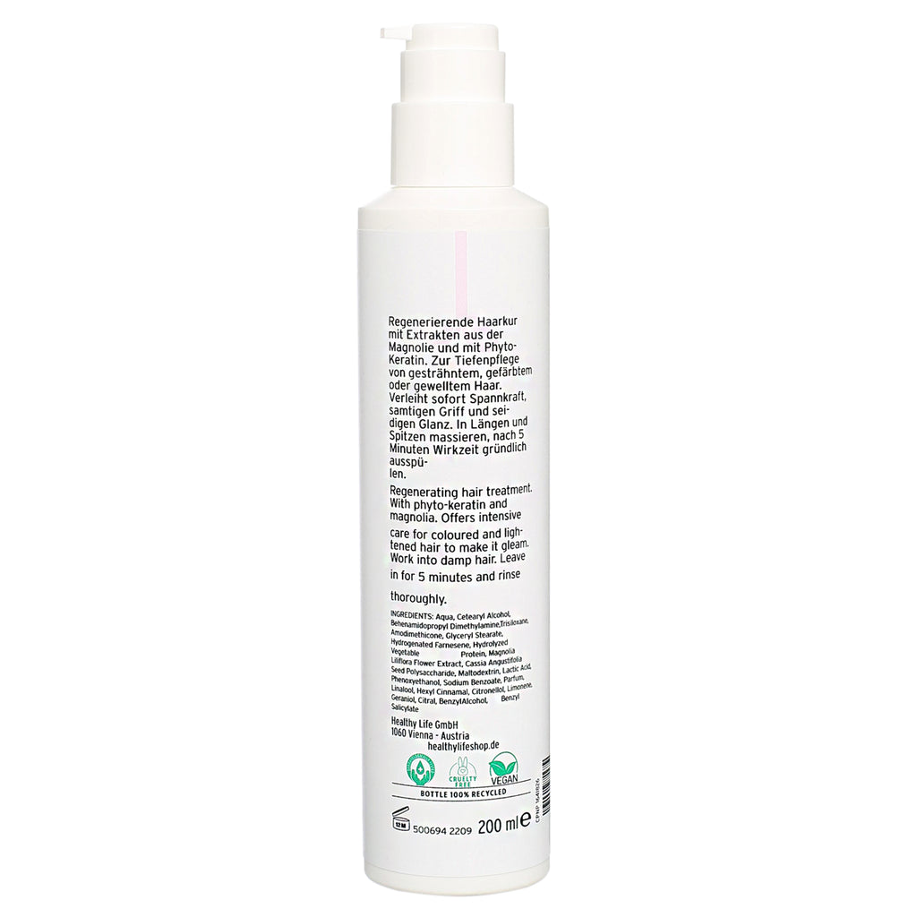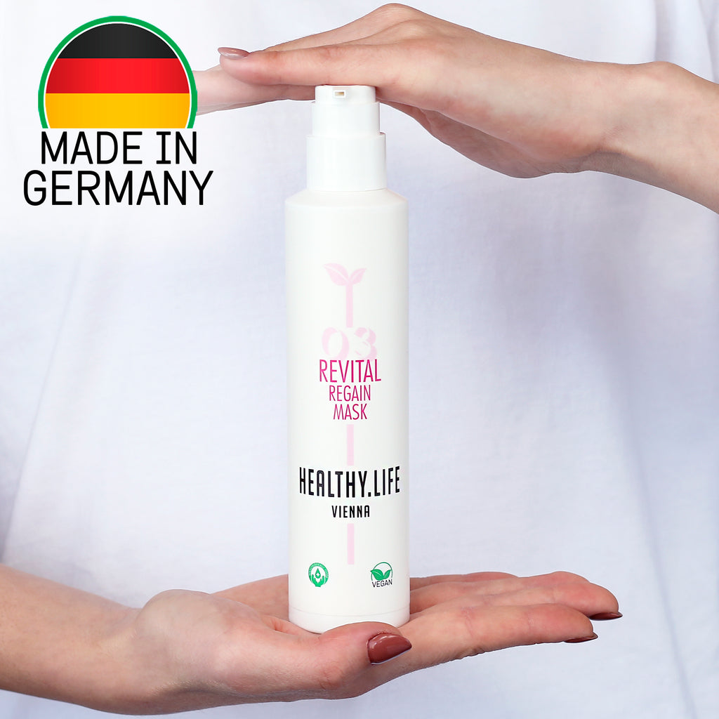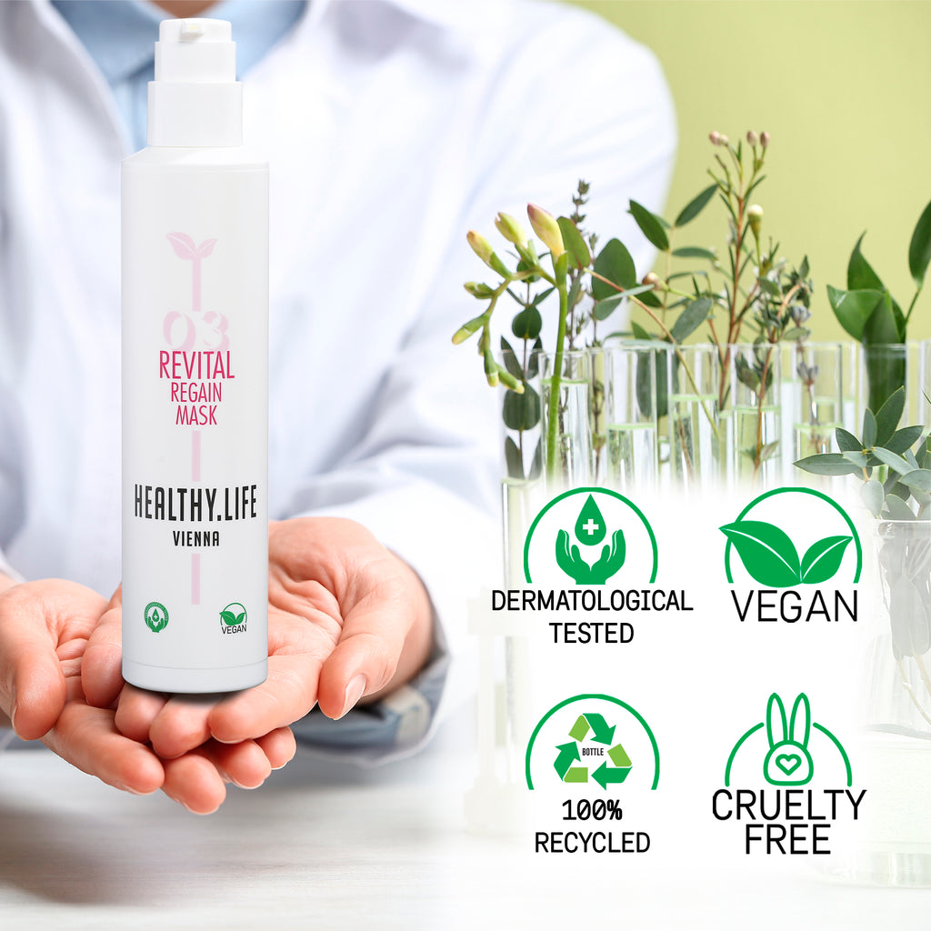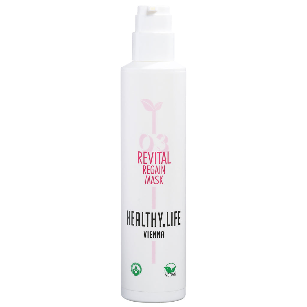 Revital Regain Mask führt dem Haar die Pflege-Wirkstoffe Magnolie und PhytoKeratin in hoher Konzentration zu. Selbst die Struktur von strapaziertem Haar wird stark verbessert. Das Haar ist geschmeidiger und glänzender. Auch die Haltbarkeit der Coloration verbessert sich stark. Die Maske fünf bis zehn Minuten – am besten unter Wärme – einwirken lassen und wieder ausspülen.