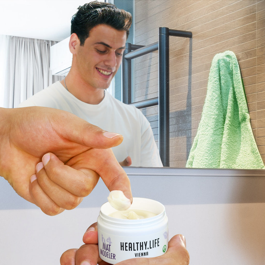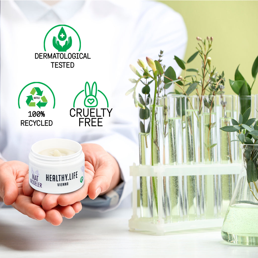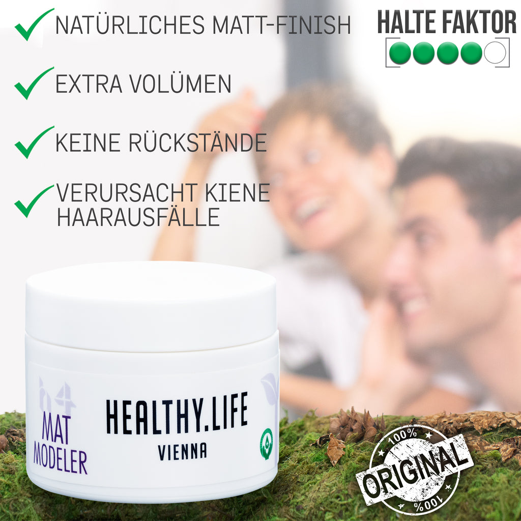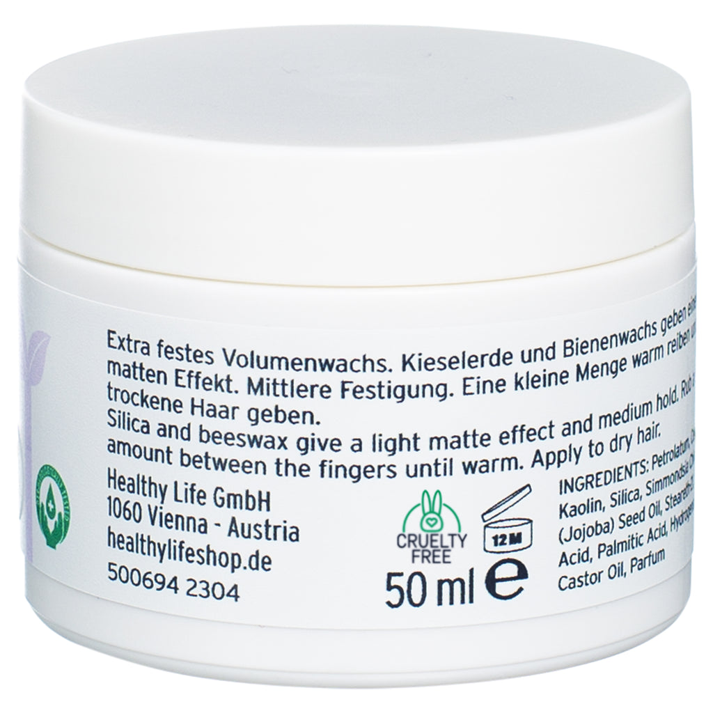 MAT Modeler ist ein extra festes Volumenwachs, das sich sehr gut für plastische Formgebung eignet. Durch seine sehr feste Konsistenz erhält auch feines Haar starkes Volumen. Kieselerde und Bienenwachs geben einen leicht matten Effekt.