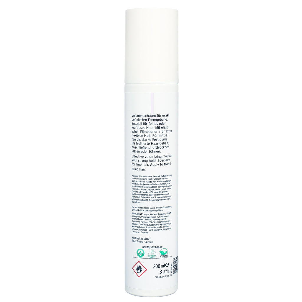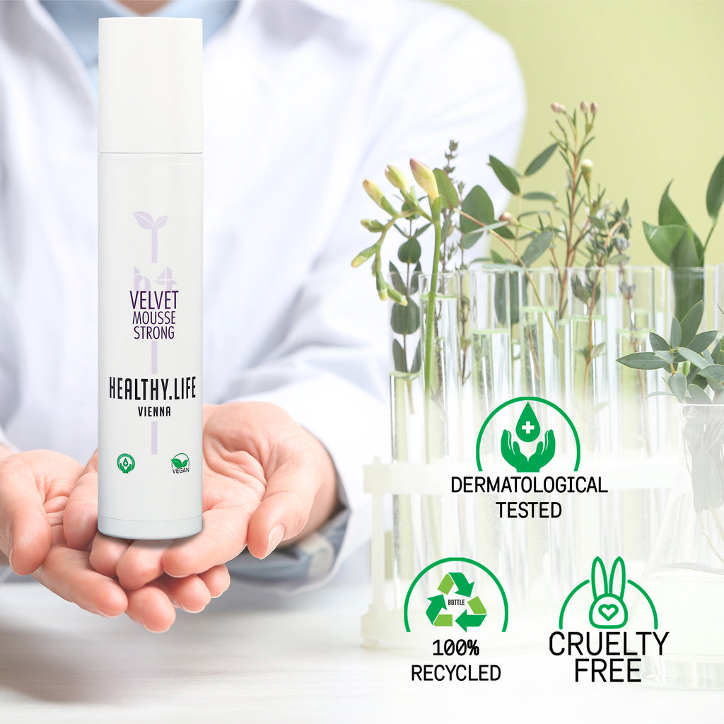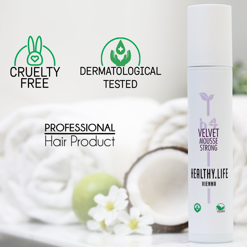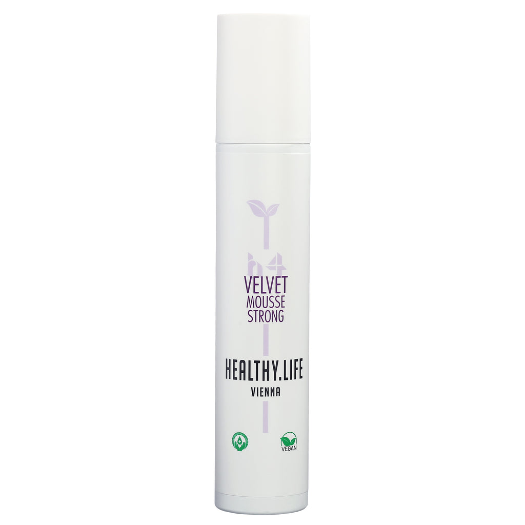 VELVET Mousse Strong gibt starken Halt und extra Fülle. Speziell bei feinem Haar ist dieser Schaumfestiger geeignet für mehr Ansatzvolumen. Das Haar verklebt trotz kräftigem Halt nicht. Rückstandslos auskämmbar.